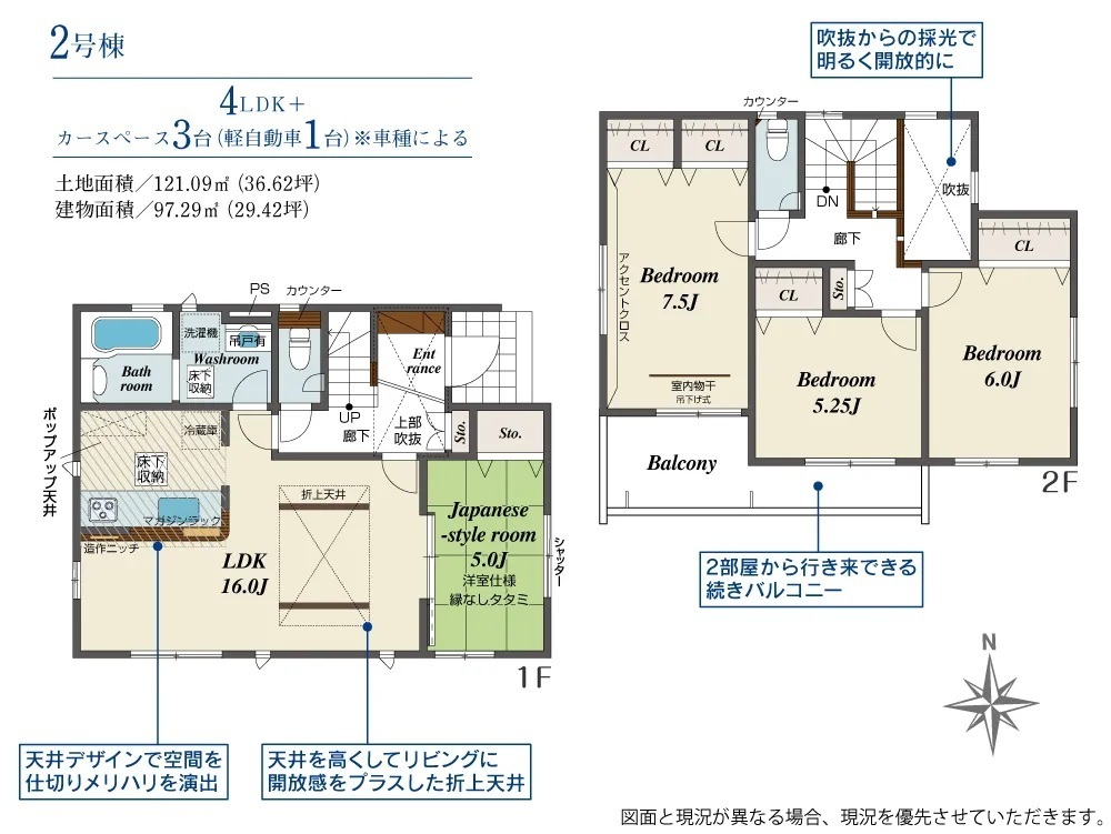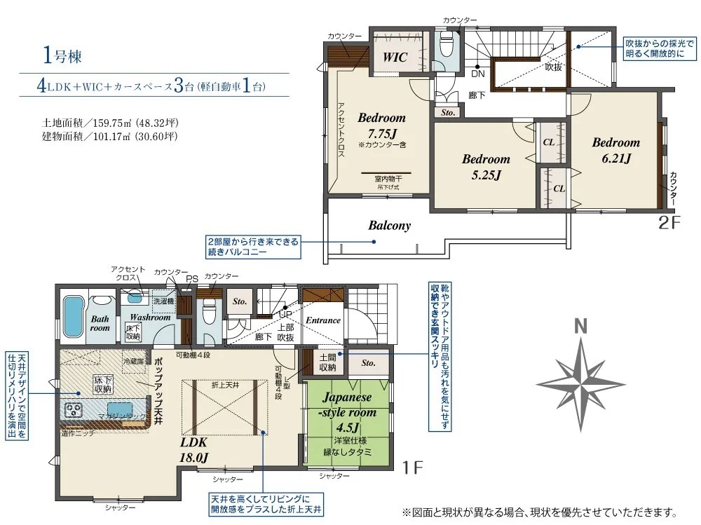 長期優良住宅・住宅性能表示W取得・耐震等級3・テレワークスペース完備・ポップアップ天井・折り上げ天井・食器洗浄乾燥機・吹き抜け・ルーフバルコニー・ウォークインクローゼット・土間収納・パントリー・吹き抜け