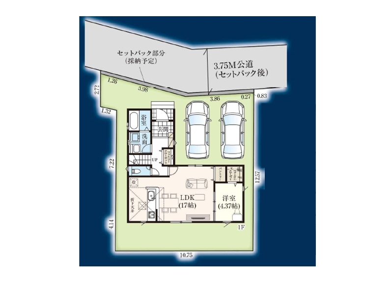 ◯所在地/静岡県磐田市天龍1052-5 ◯交通/JR東海道本線「磐田」駅、徒歩20分 ◯総区画数/1区画 ◯販売棟数/1棟 ◯土地権利/所有権 ◯土地面積/171.88㎡ ◯建物面積/103.92㎡ ◯建築確認番号/第R07SHC117587号 ◯構造/木造サイディングシングル葺2階建て ◯都市計画/市街化区域 ◯用途地域/工業地域 ◯建ぺい率/60% ◯容積率/200% 設備/公営水道・中部電力・都市ガス・本下水 ◯接道/西側4.2m ◯完成/2026年1月予定