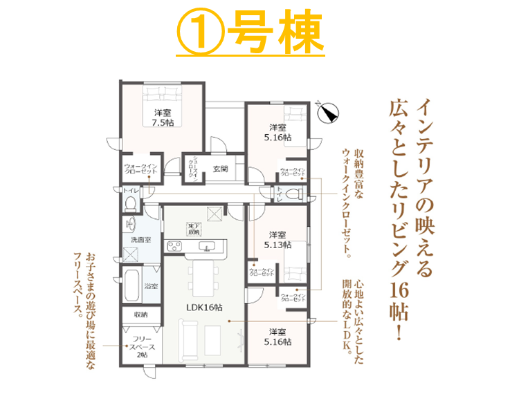 ・対面式キッチン・長期優良住宅・住宅性能表示W取得・耐震等級3・浴室暖房換気乾燥機・TVモニター付インターホン・ウォークインクローゼット・フリースペース・平屋建て