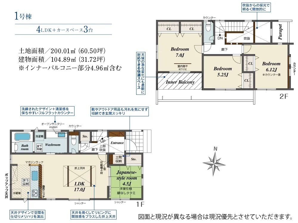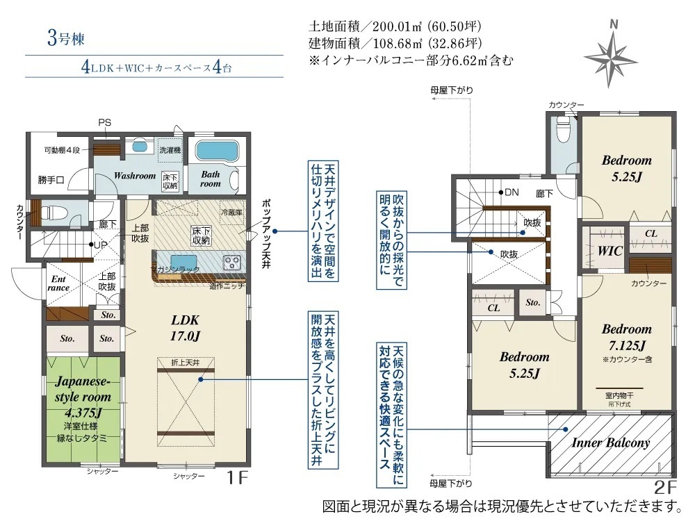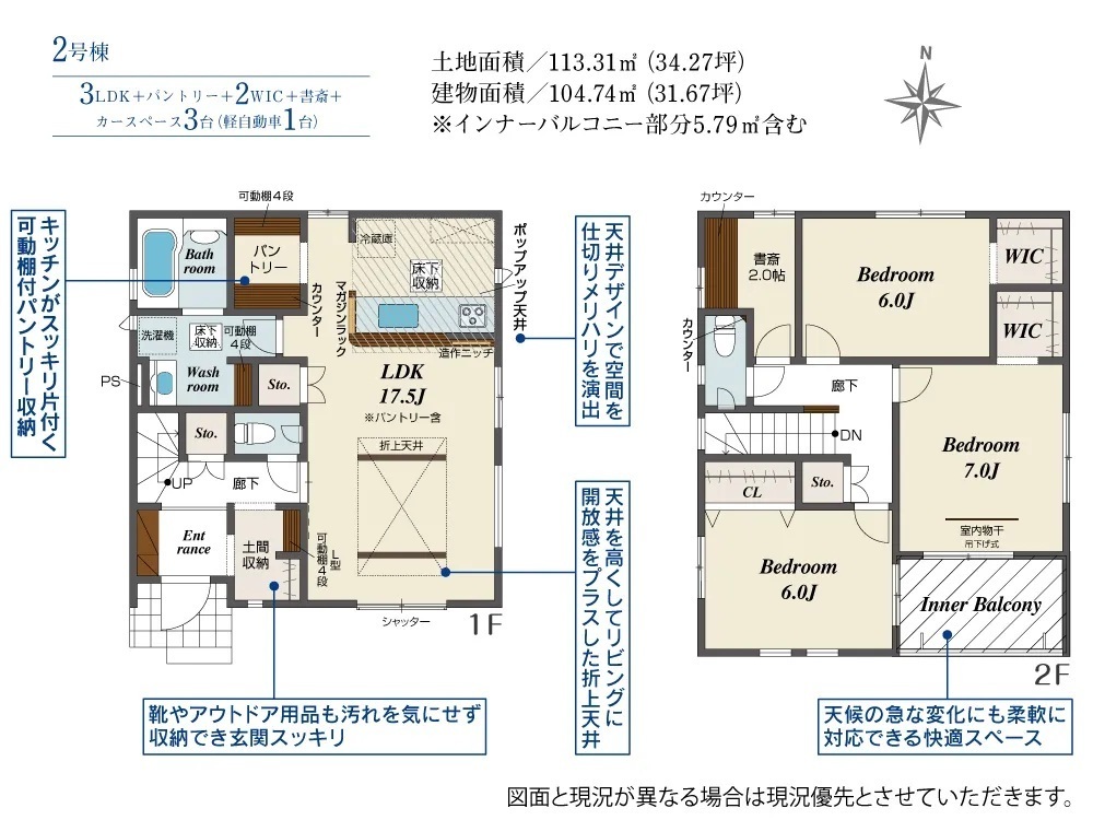 ・長期優良住宅・住宅性能表示W取得・耐震等級3・テレワークスペース完備・ポップアップ天井・折り上げ天井・食器洗浄乾燥機・インナーバルコニー・ウォークインクローゼット・パントリー・マルチスキップ・土間収納・吹き抜け