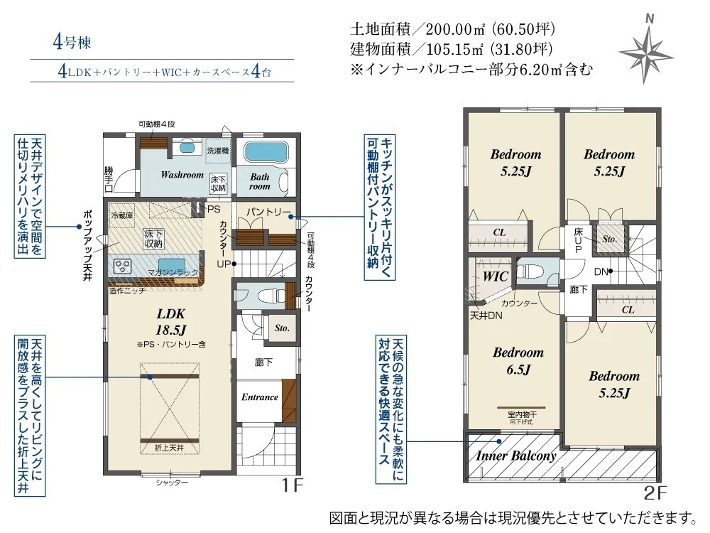 ・デザイン住宅・ビルトイン食洗機・ウォークインクローゼット・土間収納・ポップアップ天井・全室洋室・デザイン住宅