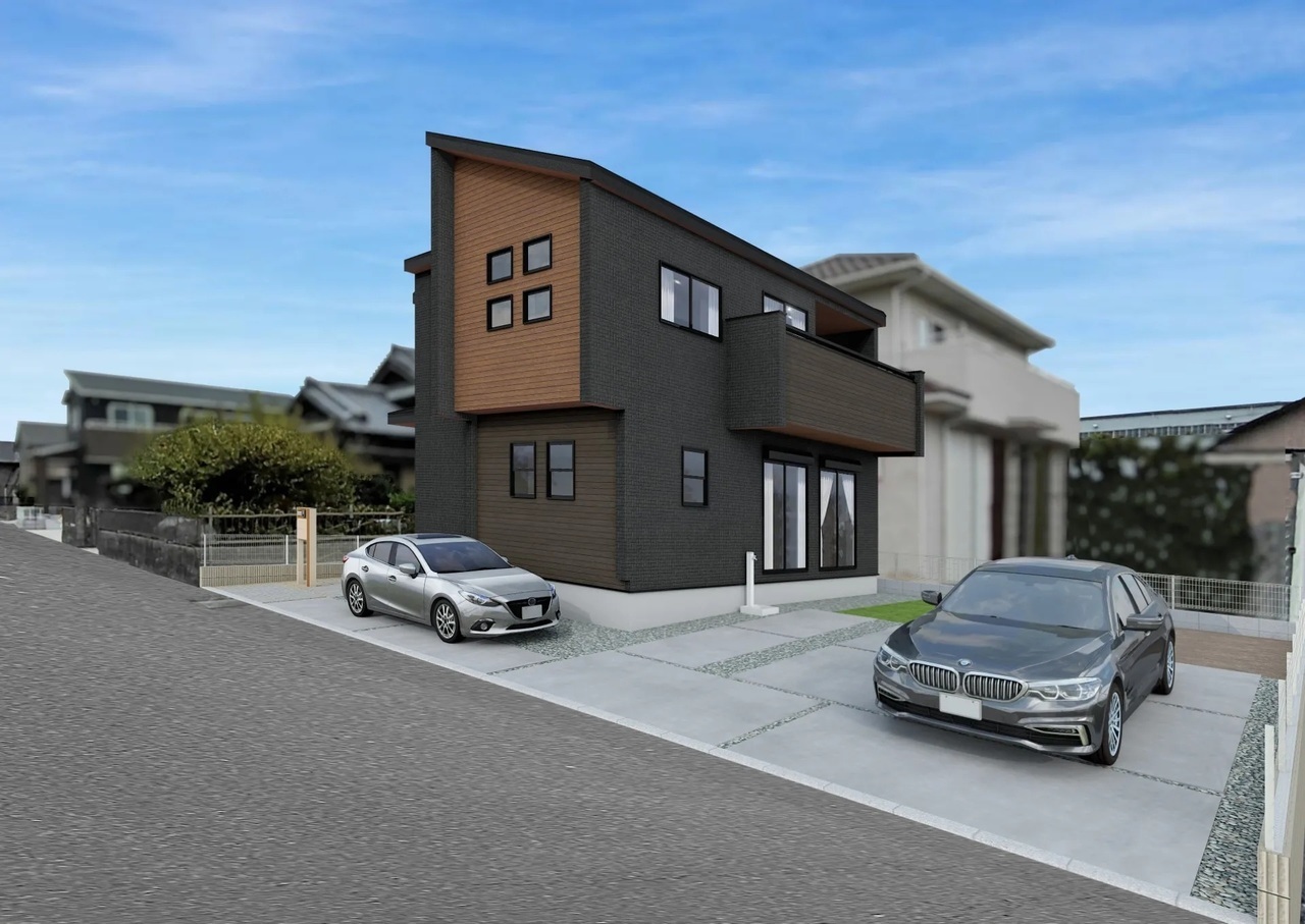 ◯所在地/静岡県磐田市森本370-1他 ◯交通/JR東海道本線「豊田町」駅、徒歩15分 ◯総区画数/2区画 ◯販売棟数/2棟 ◯土地権利/所有権 ◯地目/宅地 ◯土地面積/173.16㎡・200.10㎡ ◯建物面積/97.19㎡・102.06㎡ ◯建築番号/第R07SHC118635号他 ◯構造/在来木造サイディング貼スレート葺又はアスファルトシングル葺ガルバリウム鋼板横葺2階建て ◯都市計画/市街化調整区域 ◯用途地域/無指定 ◯建ぺい率/50% ◯容積率/80% 設備/公営水道・中部電力・本下水・プロパンガス ◯接道/北側4.5m・西側4.5m ◯完成/2026年2月予定