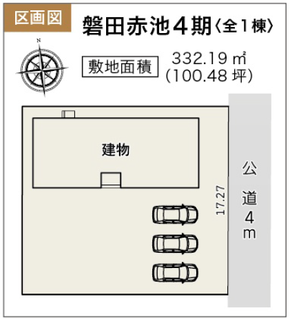 ◯所在地/静岡県磐田市赤池18-2 ◯交通/東海道本線「豊田町」駅、車3分 ◯総区画数/1区画 ◯販売棟数/1棟 ◯土地権利/所有権 ◯地目/宅地 ◯土地面積/332.19㎡ ◯建物面積/96.05㎡ ◯確認建築番号/第KS125-0410-54825号 ◯構造/木造在来軸組工法1階建て ◯土地計画/市街化調整区域 ◯用途地域/無指定 ◯建ぺい率/50% ◯容積率/80% ◯設備/公営水道・中部電力・本下水・個別プロパンガス ◯接道状況/東側4.0m ◯完成/2025年10月予定