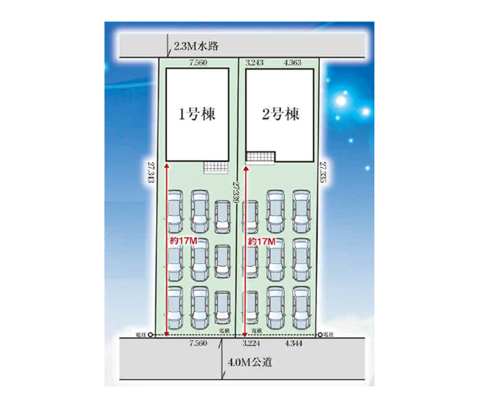◯所在地/静岡県磐田市西貝塚457-1他 ◯交通/JR東海道本線「磐田」駅、徒歩17分 ◯総区画数/3区画 ◯販売棟数/3棟 ◯土地権利/所有権 ◯土地面積/208.77㎡~227.44㎡ ◯建物面積/111.27㎡・111.53㎡ ◯建築確認番号/第R07SHC102994号他 ◯構造/木造在来2階建 ◯都市計画/市街化区域 ◯用途地域/工業地域 ◯建ぺい率/60% ◯容積率/200% 設備/公営水道・中部電力・本下水・個別プロパンガス ◯接道/南側4.0m・西側7.4m ◯完成/2025年8月予定