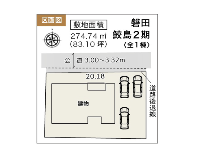◯所在地/静岡県磐田市鮫島1380 ◯交通/東海道本線「豊田町」駅、車12分 ◯総区画数/1区画 ◯販売棟数/1棟 ◯土地権利/所有権 ◯地目/宅地 ◯土地面積/274.74㎡ ◯建物面積/95.64㎡ ◯確認建築番号/第KS125-0410-55709号 ◯構造/木造在来軸組工法1階建て ◯土地計画/市街化調整区域 ◯用途地域/無指定 ◯建ぺい率/50% ◯容積率/80% ◯設備/公営水道・中部電力・本下水・個別プロパンガス ◯接道状況/北側3.0m ◯完成/2026年2月予定