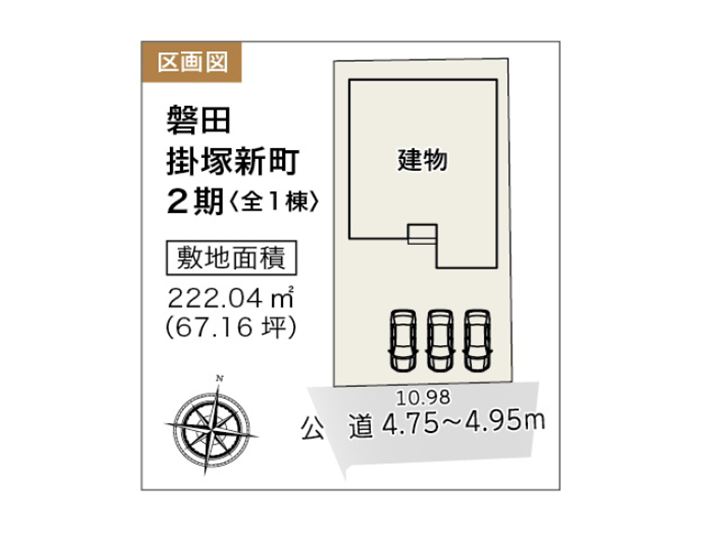 ◯所在地/静岡県磐田市掛塚新町1282-2 ◯交通/東海道本線「豊田町」駅、車13分 ◯総区画数/1区画 ◯販売棟数/1棟 ◯土地権利/所有権 ◯地目/宅地 ◯土地面積/222.04㎡ ◯建物面積/96.05㎡ ◯確認建築番号/第KS125-0410-55284号 ◯構造/木造在来軸組工法1階建て ◯土地計画/市街化区域 ◯用途地域/第2種中高層住居専用地域 ◯建ぺい率/60% ◯容積率/150% ◯設備/公営水道・中部電力・本下水・個別プロパンガス ◯接道状況/南側4.7m ◯完成/2026年1月予定