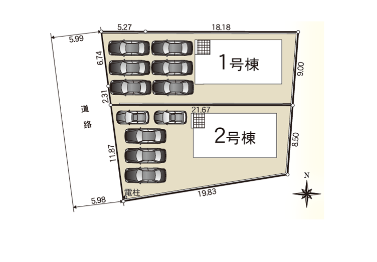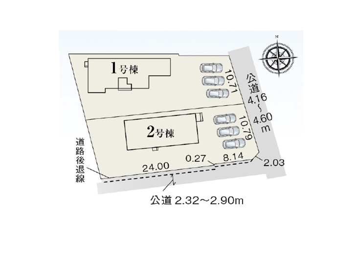 ◯所在地/静岡県袋井市深見1344-1 ◯交通/東海道本線「袋井」駅、車15分 ◯総区画数/2区画 ◯販売棟数/2棟 ◯土地権利/所有権 ◯地目/宅地 ◯土地面積/293.76㎡・293.28㎡ ◯建物面積/96.05㎡・96.05㎡ ◯建築確認番号/第KS126-0410-50020号 ◯構造/木造在来軸組工法1階建 ◯都市計画/非線引き区域 ◯用途地域/無指定 ◯建ぺい率/60% ◯容積率/200% ◯設備/公営水道・中部電力・浄化槽・個別プロパンガス ◯接道状況/西側5.0m・南側5.0m公道に接道 ◯完成/2026年4月予定