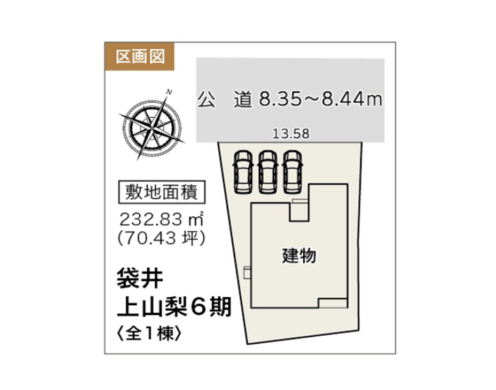 ◯所在地/静岡県袋井市上山梨3026 ◯交通/東海道本線「袋井」駅、バス24分、バス停「春岡上」徒歩5分 ◯総区画数/1区画 ◯販売棟数/1棟 ◯土地権利/所有権 ◯地目/宅地 ◯土地面積/232.83㎡ ◯建物面積/96.05㎡ ◯建築確認番号/第KS125-0420-55429号 ◯構造/木造在来軸組工法1階建 ◯都市計画/非線引き区域 ◯用途地域/近隣商業地域 ◯建ぺい率/80% ◯容積率/200% ◯設備/公営水道・中部電力・浄化槽・個別プロパンガス ◯接道状況/南側8.3m公道に接道 ◯完成/2026年2月予定