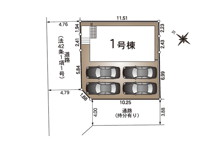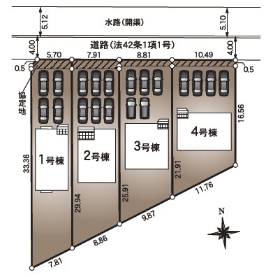 ◯所在地/静岡県浜松市中央区倉松町323-1他 ◯交通/東海道本線「浜松」駅バス25分、バス停「小沢渡鉄工団地」徒歩4分 ◯総区画数/4区画 ◯販売棟数/4棟 ◯土地権利/所有権 ◯地目/宅地 ◯土地面積/216.75㎡~261.54㎡ ◯建物面積/98.81㎡~103.68㎡ ◯建築確認番号/第R07SHC119183号他 ◯構造/木造2階建 ◯都市計画/市街化調整区域 ◯用途地域/無指定 ◯建ぺい率/60% ◯容積率/200% ◯設備/公営水道・中部電力・個別プロパンガス・下水道 ◯接道状況/南側4.0mに接道 ◯完成/2026年2月予定