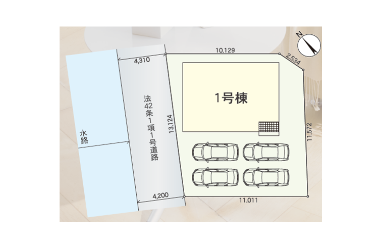 ◯所在地/静岡県浜松市中央区曳馬4丁目1351他 ◯交通/遠州鉄道「曳馬」駅、徒歩7分 ◯総区画数/4区画 ◯販売棟数/4棟 ◯土地権利/所有権 ◯土地面積/141.17㎡~198.33㎡ ◯建物面積/93.56㎡~116.13㎡ ◯建築確認番号/第2024確認建築静建住ま08283号 ◯構造/木造2階建ガルバリウム鋼板葺 ◯都市計画/市街化区域 ◯用途地域/第一種住居地域 ◯建ぺい率/60% ◯容積率/200% 設備/公営水道・中部電力・本下水・都市ガス ◯接道/南側4.4m ◯完成/2025年5月予定
