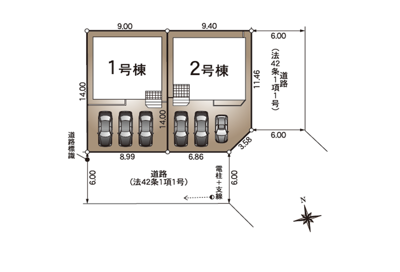 ◯所在地/静岡県浜松市中央区萩丘5丁目1628-23 ◯交通/遠州鉄道「上島」駅、徒歩26分 ◯総区画数/2区画 ◯販売棟数/2棟 ◯土地権利/所有権 ◯地目/宅地 ◯土地面積/116.39㎡・115.09㎡ ◯建物面積/90.72㎡・95.58㎡ ◯建築確認番号/第R07SHC106779号他 ◯構造/木造2階建 ◯都市計画/市街化区域 ◯用途地域/第一種住居地域 ◯建ぺい率/60% ◯容積率/200% ◯設備/公営水道・中部電力・都市ガス・下水道 ◯接道状況/西側6.0mに接道 ◯完成/2025年11月予定