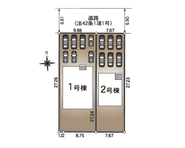 ◯所在地/静岡県浜松市中央区小沢渡町1332他 ◯交通/JR東海道本線「高塚」駅、徒歩14分 ◯総区画数/2区画 ◯販売棟数/2棟 ◯土地権利/所有権 ◯地目/宅地 ◯土地面積/271.95㎡・209.16㎡ ◯建物面積/93.15㎡・100.44㎡ ◯建築確認番号/第R07SHC124145号 ◯構造/木造1階・2階建 ◯都市計画/市街化調整区域 ◯用途地域/無指定 ◯建ぺい率/60% ◯容積率/200% ◯設備/公営水道・中部電力・都市ガス・下水道 ◯接道状況/北側6.8mに接道 ◯完成/2026年5月予定