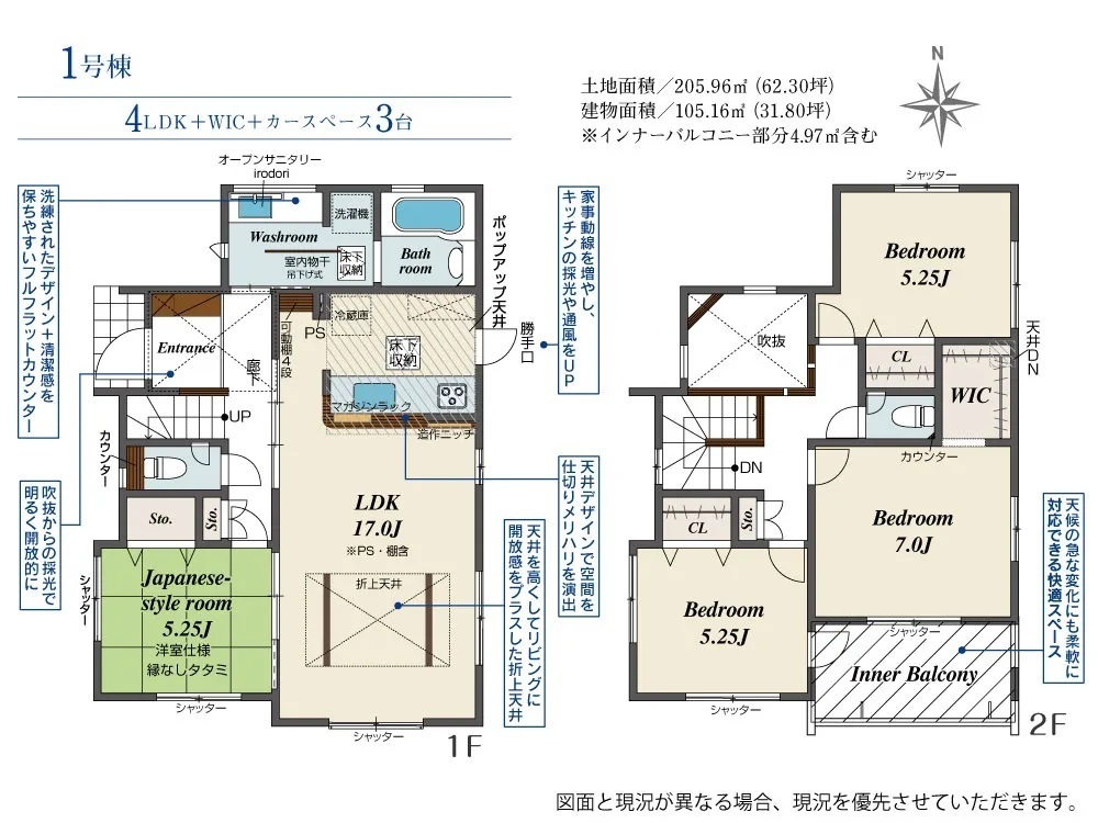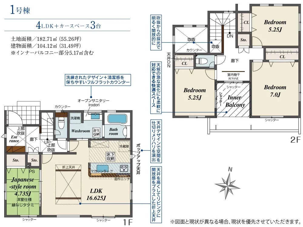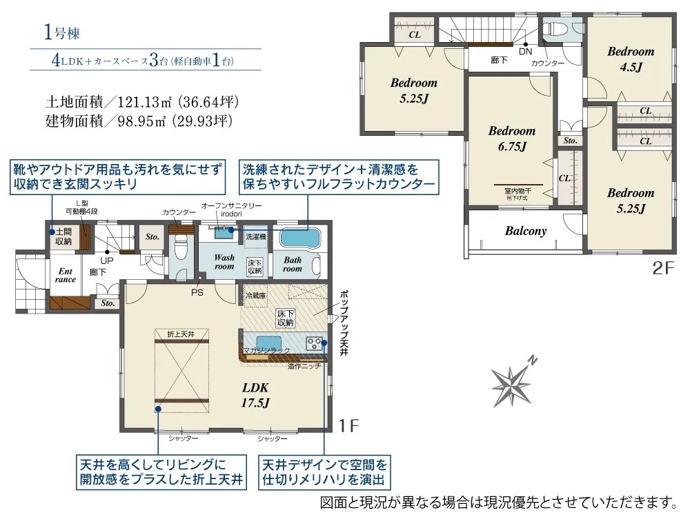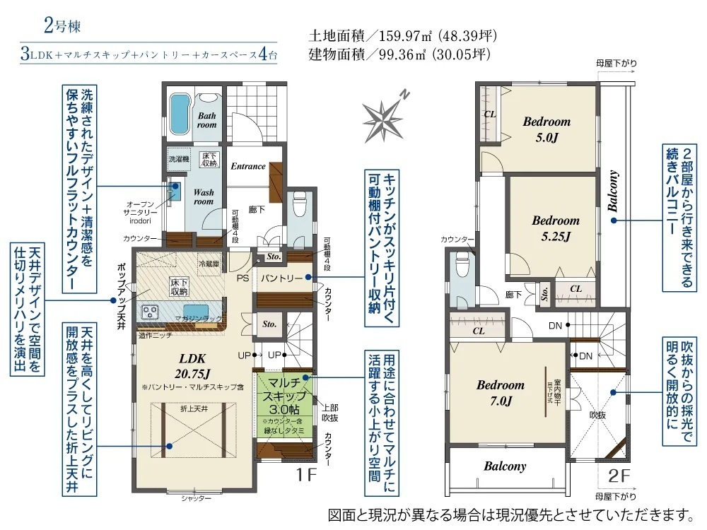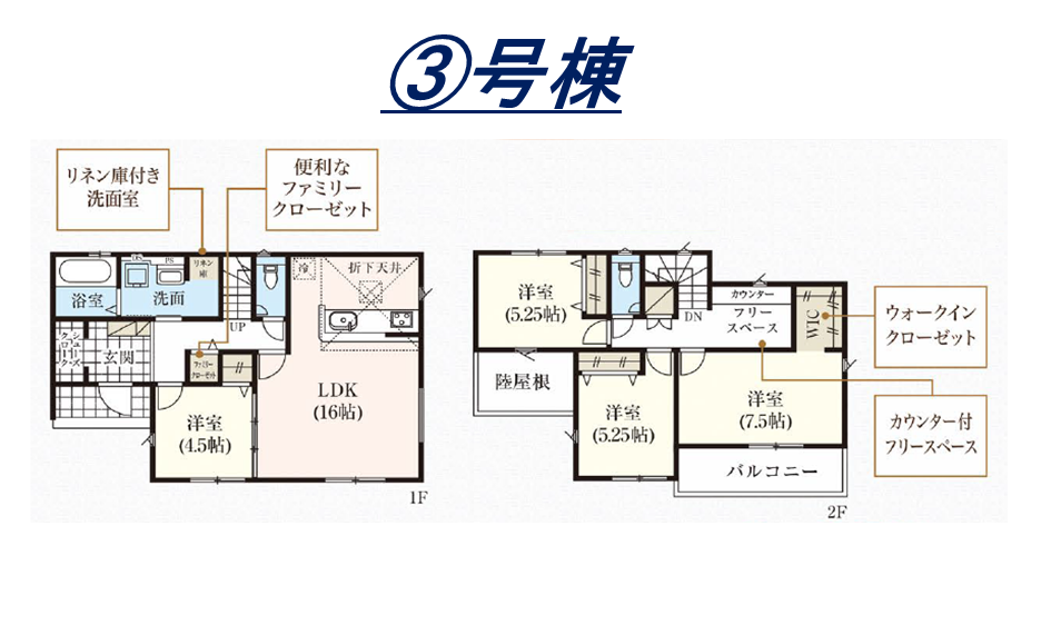 設計性能評価・耐震等級3・ビルトイン食洗機・ウォークインクローゼット・シューズinクローク・ポップアップ天井・ポップアップ天井・スカイデッキ