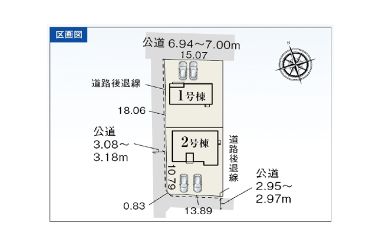 ◯所在地/静岡県浜松市中央区大瀬町350-10 ◯交通/遠州鉄道「さぎの宮」駅、徒歩15分 ◯総区画数/2区画 ◯販売棟数/2棟 ◯土地権利/所有権 ◯地目/宅地 ◯土地面積/126.04㎡・128.42㎡ ◯建物面積/98.82㎡・103.68㎡ ◯建築確認番号/第R07SHC124420号 ◯構造/木造2階建 ◯都市計画/市街化区域 ◯用途地域/第一種中高層住居専用地域 ◯建ぺい率/60% ◯容積率/200% ◯設備/公営水道・中部電力・都市ガス・下水道 ◯接道状況/南側6.0m・東側6.0mに接道 ◯完成/2026年4月予定