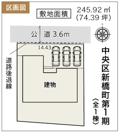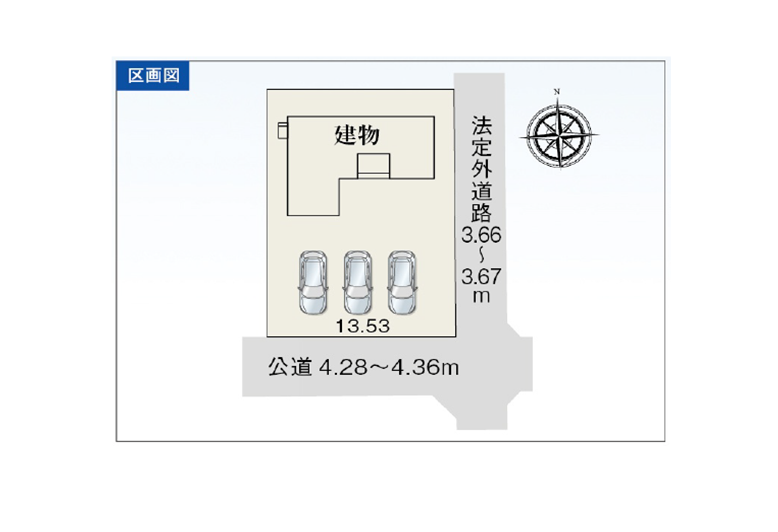 ◯所在地/静岡県浜松市中央区白鳥町600-1 ◯交通/JR東海道本線「天竜川」駅、車11分 ◯総区画数/3区画 ◯販売棟数/3棟 ◯土地権利/所有権 ◯地目/宅地 ◯土地面積/210.35㎡~260.89㎡ ◯建物面積/95.23㎡~110.96㎡ ◯確認建築番号/第KS125-0410-54633号 ◯構造/木造在来軸組工法1階・2階建て ◯土地計画/市街化調整区域 ◯用途地域/無指定 ◯建ぺい率/60% ◯容積率/200% ◯設備/公営水道・中部電力・浄化槽・個別プロパンガス ◯接道状況/北側2.6m・東側4.7m ◯完成/2026年2月予定