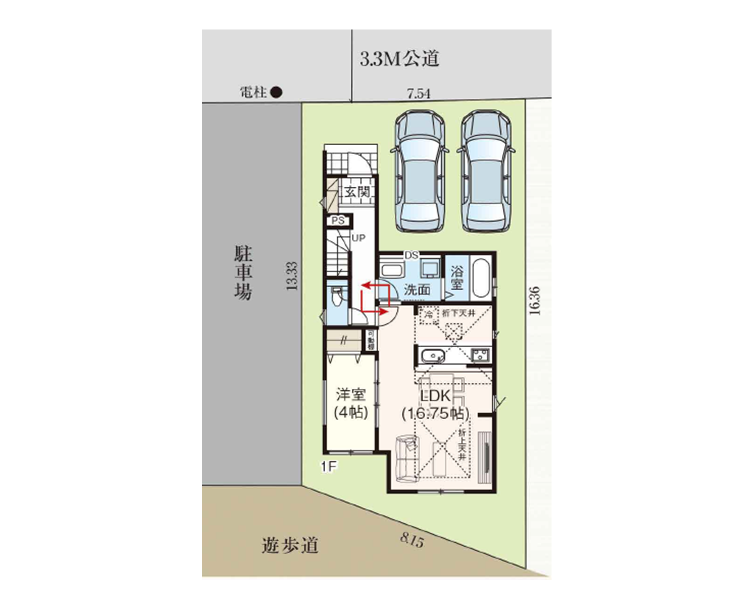 ◯所在地/静岡県浜松市中央区舞阪町舞阪4331 ◯交通/JR東海道本線「舞阪」駅、徒歩20分 ◯総区画数/1区画 ◯販売棟数/1棟 ◯土地権利/所有権 ◯地目/宅地 ◯土地面積/165.47㎡ ◯建物面積/110.55㎡ ◯確認建築番号/第KS125-0420-58055号 ◯構造/木造在来軸組工法2階建て ◯土地計画/市街化区域 ◯用途地域/第一種住居地域 ◯建ぺい率/60% ◯容積率/200% ◯設備/公営水道・中部電力・本下水・個別プロパンガス ◯接道状況/北側4.0m ◯完成/2026年2月予定