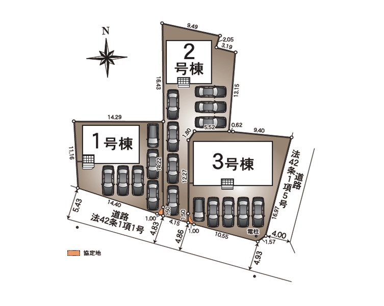 ◯所在地/静岡県浜松市浜名区平口2380他 ◯交通/遠州鉄道「遠州小松」駅、徒歩27分 ◯総区画数/3区画 ◯販売棟数/3棟 ◯土地権利/所有権 ◯地目/宅地 ◯土地面積/187.00㎡~240.94㎡ ◯建物面積/89.10㎡~101.25㎡ ◯建築確認番号/第R07SHC100857号他 ◯構造/木造スレート葺アスファルトシングル葺1階・2階建て ◯都市計画/市街化調整区域 ◯用途地域/無指定 ◯建ぺい率/60% ◯容積率/200% ◯設備/公営水道・中部電力・浄化槽・個別プロパンガス ◯接道状況/南側4.8m公道に接道 ◯完成/2026年6月予定