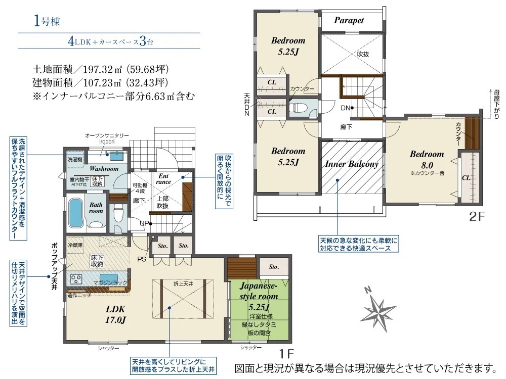 ・長期優良住宅・住宅性能表示W取得・耐震等級3・ポップアップ天井・折り上げ天井・食器洗浄乾燥機・吹き抜け・インナーバルコニー