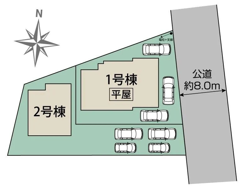 ◯所在地/静岡県菊川市下平川1831-2 ◯交通/JR東海道本線「菊川」駅、バス23分、バス停「平田」徒歩3分 ◯総区画数/2区画 ◯販売棟数/2棟 ◯土地権利/所有権 ◯地目/宅地 ◯土地面積/245.02㎡・243.32㎡ ◯建物面積/98.82㎡ ◯建築番号/第R07SHC110234号他 ◯構造/木造スレート葺又はアスファルトシングル葺ガルバリウム鋼板横葺2階建て ◯都市計画/非線引き区域 ◯用途地域/第一種低層住居専用地域 ◯建ぺい率/50% ◯容積率/80% 設備/公営水道・中部電力・個別プロパンガス・浄化槽 ◯接道/西側5.0m ◯完成/2025年11月予定